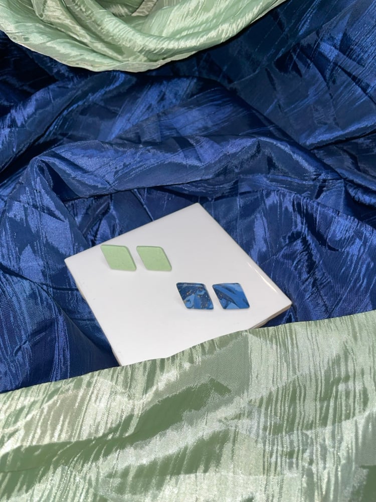 Diamond shaped 2pk studs. Available in Sage/Ocean and Beige/Bronze Mix